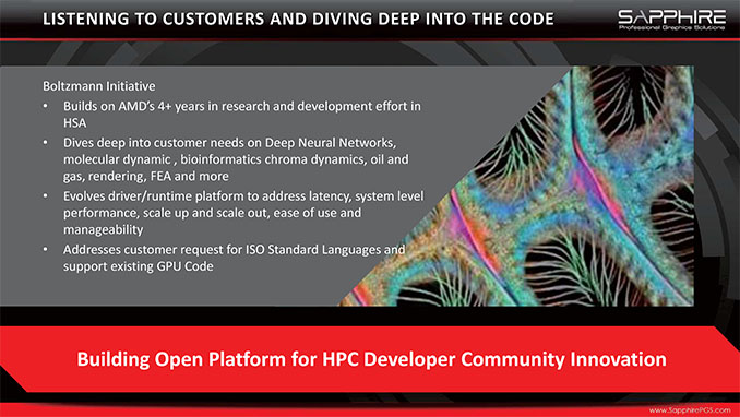 まとめると、ボルツマンイニシアティブでAMDは、HPCスペースで彼ら自身を再定義するための重要で非常に多くの必要なステップを踏んでいます。LinuxのヘッドレスOSサポートやユニファイドメモリ空間のために改良したドライバーレイヤ、直接のコンパイラー、C++単一ソースのコンパイル実行、そして確立されたCUDAユーザに届くためにCUDA互換レイヤを提供することで、AMDはついに問題のHPCサイドでかなり積極的になっており、そして彼らは、長い間これを作成するに必要だったことを多く議論した上で移動しています。この時点では、AMDはプロセスにおける品質ツールを提供するためにロードマップを提供する必要があります。それでもNVIDIAは良い製品を通じてHPCスペースでその場所を獲得していますし、簡単には排除できないでしょう。CUDAは開発者がそれを必要とした時を確実に掴んでいます。しかし、AMDにとって、彼らがボルツマンを実行することができるならば、5年目にして初めて、利益の上がるそして高収益性のHPCマーケットに対して成功するチャンスを持つことになるでしょう。